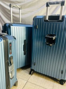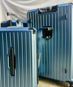 - Mobilité : Chaque valise est équipée de 4 roues doubles multidirectionnelles 360° silencieuses, et d’une poignée télescopique en aluminium. Les poignées sont encore sous film plastique, signe que les valises sont neuves.